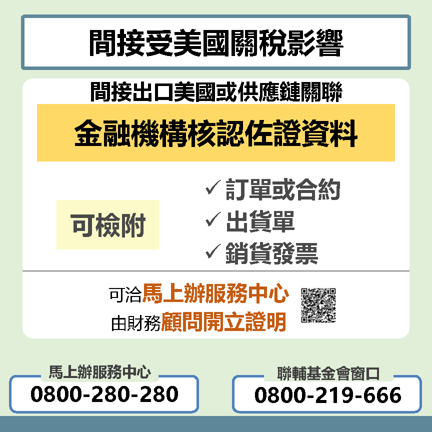 受美國對等關稅影響之企業金融協助措施單一諮詢聯繫窗口彙整表