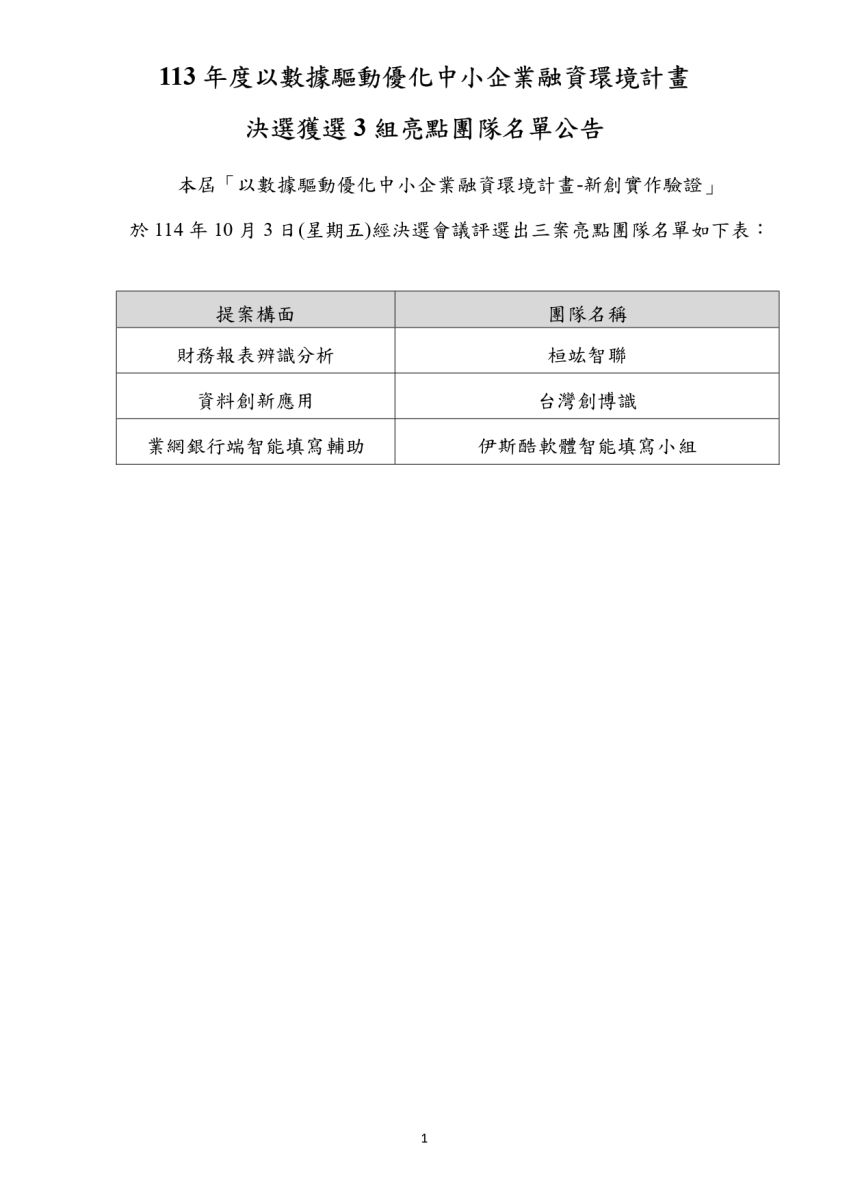 決選亮點團隊名單公告